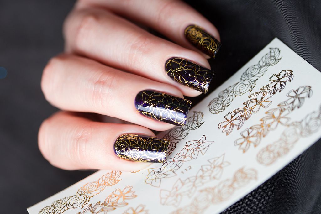 Ультратонкая пленка с фольгированным дизайном для декорирования ногтей.