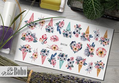 Макеты нанесены на специальную бумажную основу, после контакта с водой слайдер отстает от подложки и наносится на подготовленную ногтевую пластину. Сверху покрывается прозрачным лаком или любым финишным покрытием.